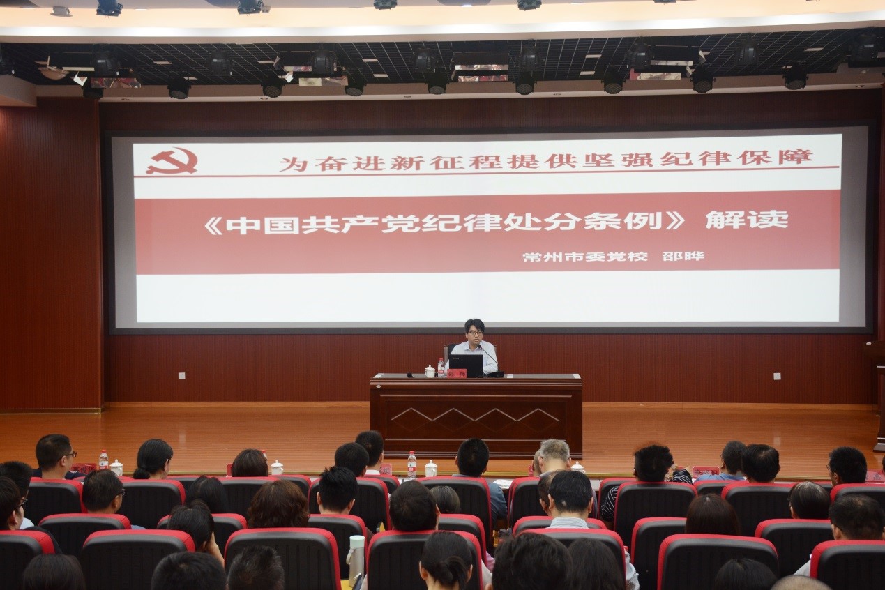 公司黨委書記陳學(xué)斌以《弘揚(yáng)紀(jì)律強(qiáng)黨的優(yōu)良傳統(tǒng),傳承紀(jì)律嚴(yán)明的紅色基因》為題,講授黨紀(jì)學(xué)習(xí)教育專題黨課,并對公司黨員提出具體要求。常州市委黨校的邵曄教授以《為奮進(jìn)新征程提供堅強(qiáng)紀(jì)律保障——<中國共產(chǎn)黨紀(jì)律處分條例>解讀》為題,做專題講座。對黨員們?nèi)姘盐諚l例的主旨要義和規(guī)定要求,提高自身理論素養(yǎng)和政治覺悟,具有強(qiáng)有力的幫助和促進(jìn)作用
